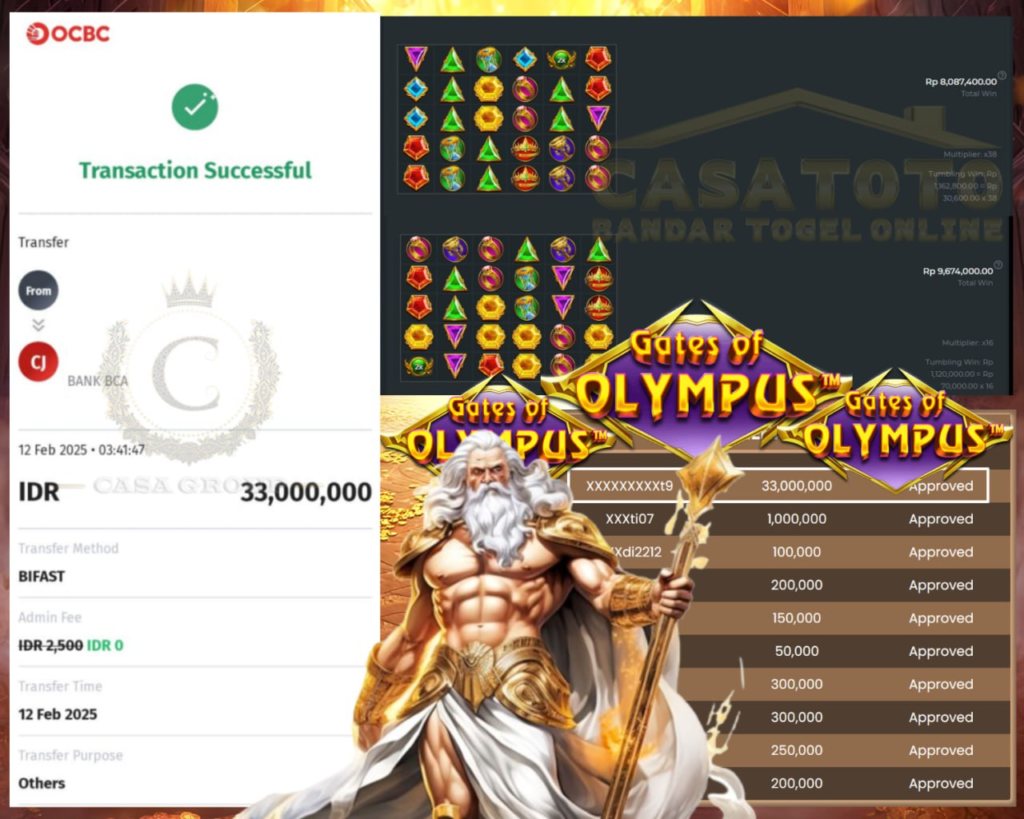 SELAMAT KEPADA MEMBER CASATOTO DENGAN USER ID XXXXXXXXXXXXt9 MENANG DI GAME GATES OF OLYMPUS DARI PROVIDER PRAGMATIC PLAY.