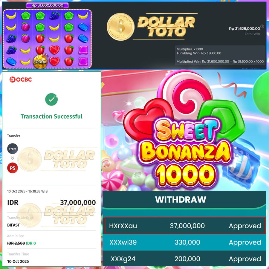 SELAMAT UNTUK MEMBER DOLLARTOTO dengan Username HXrXXau berhasil meraih kemenangan besar di permainan SWEET BONANZA 1000 – PRAGMATIC PLAY SLOT.