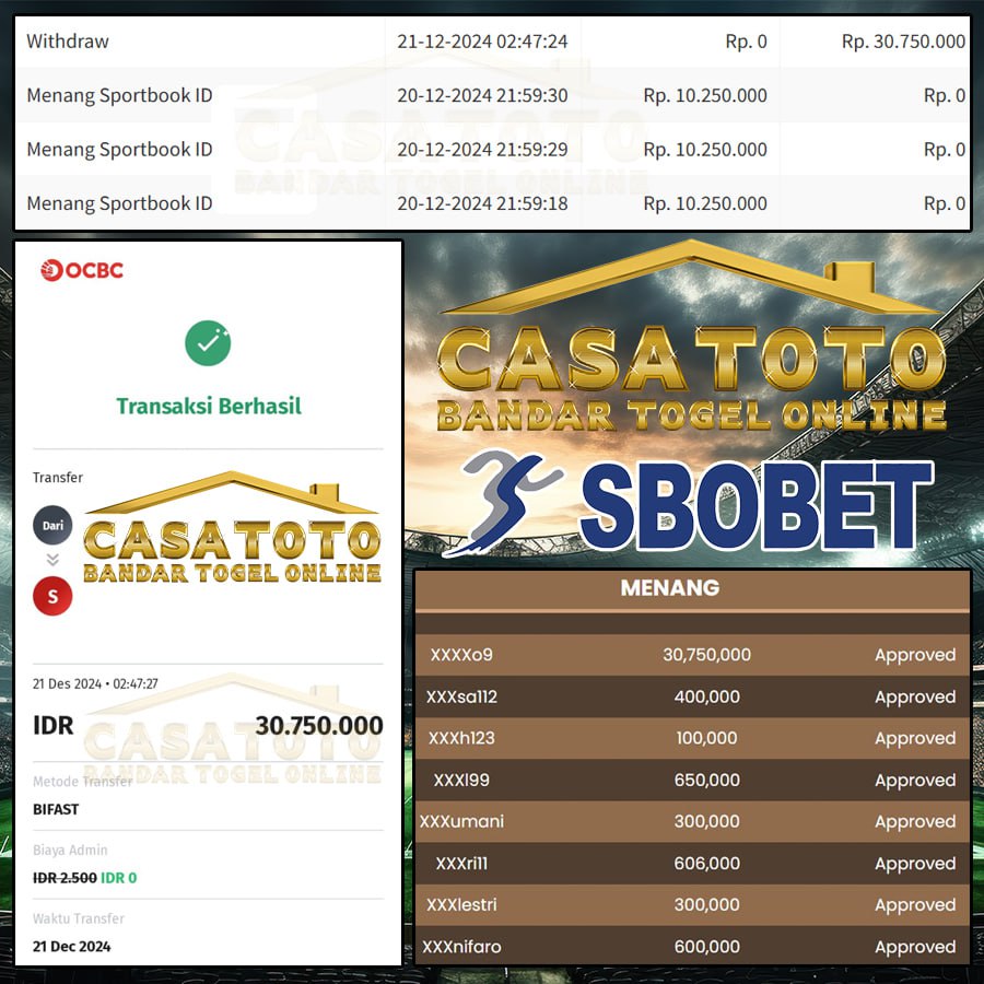 Kami ucapkan selamat kepada User ID XXXn09 yang sudah berhasil menang di permainan Sportbook ID dengan total kemenangan mencapai Rp. 30.750.000