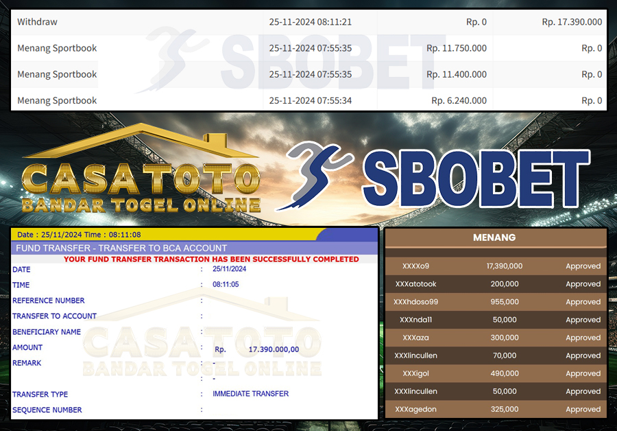 Bagi bosku yang ingin merasakan kemenangan yang sama bisa langsung segera mendaftarkan akunnya di >>CASAGROUP