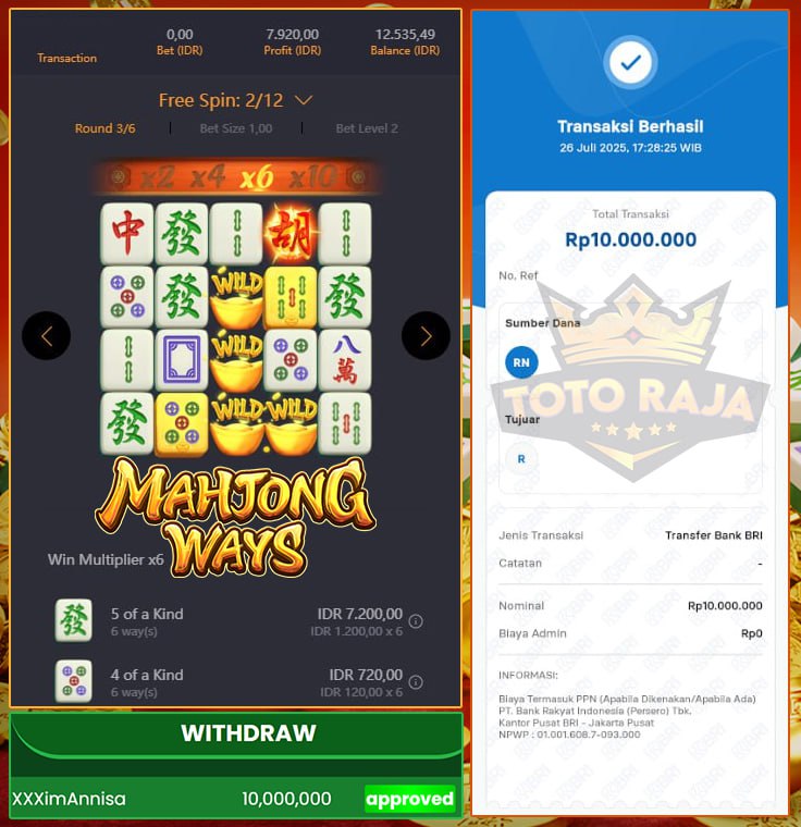 Selamat kepada member TOTORAJA dengan username XXXimAnnisa atas kemenangan luar biasa di game PG SOFT – Mahjong Ways 2!
