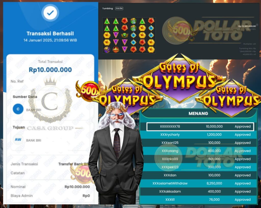 SELAMAT KEPADA MEMBER DOLLARTOTO DENGAN USER ID XXXXXXXX78 MENANG DI GAME GATES OF OLYMPUS >> PRAGAMTIC PLAY
