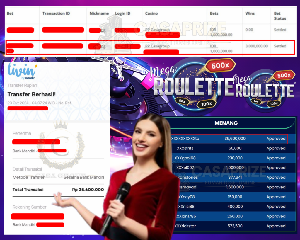 Selamat kepada member kami yang telah mendaftar di bo CASAPRIZE atas user id XXXXXXXXXXTO yang telah mendapatkan kemenangan besar.