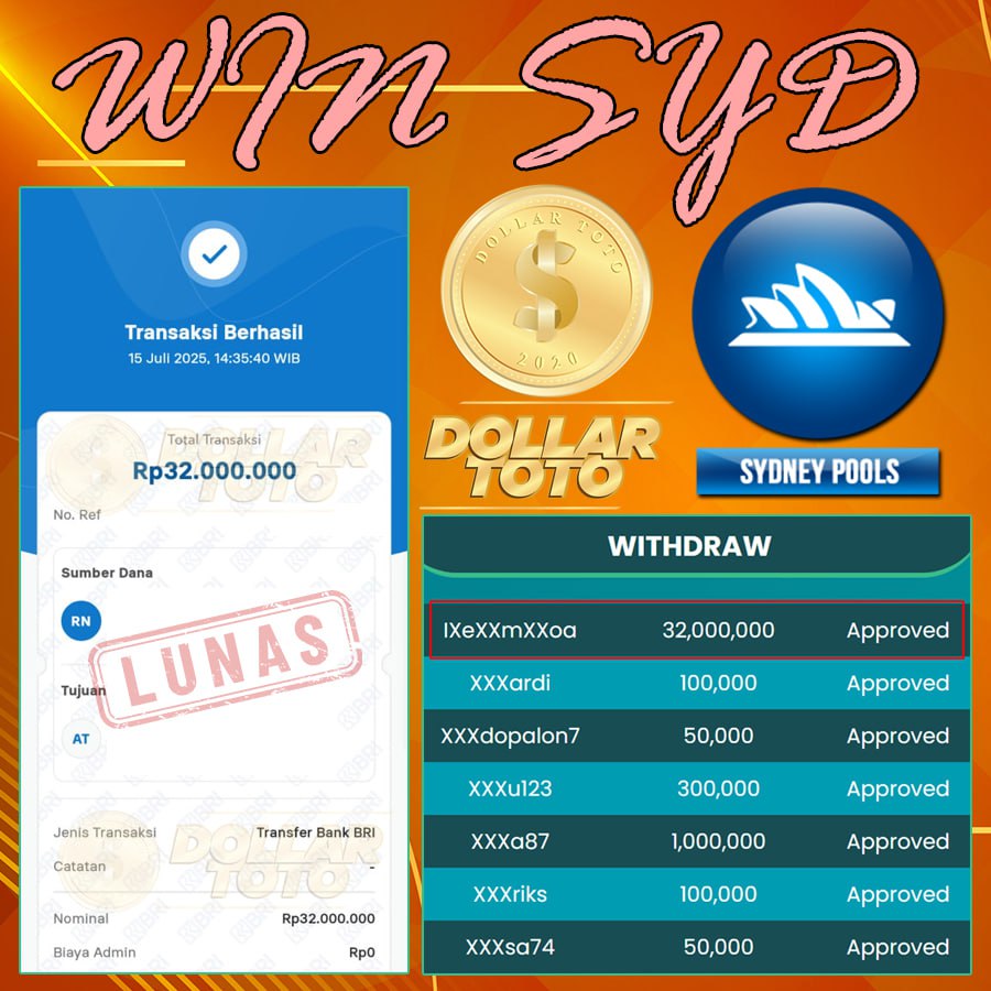 MEMBER DOLLARTOTO JACKPOT DI PASARAN SYD POOLS KETUA !! SENILAI 32 JT DI BAYAR TUNAI !!