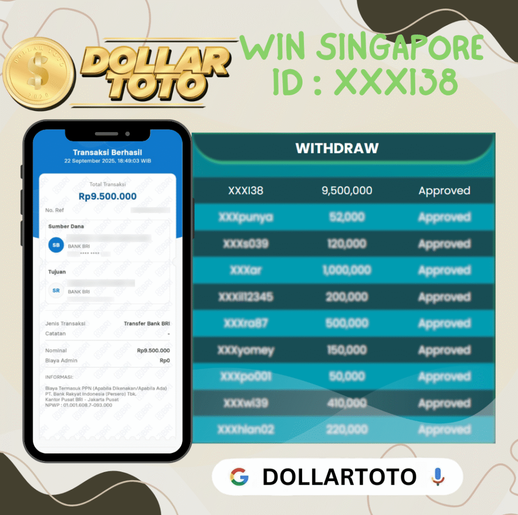 UNTUK MEMBER DOLLARTOTO DENGAN USER ID: XXXI38,