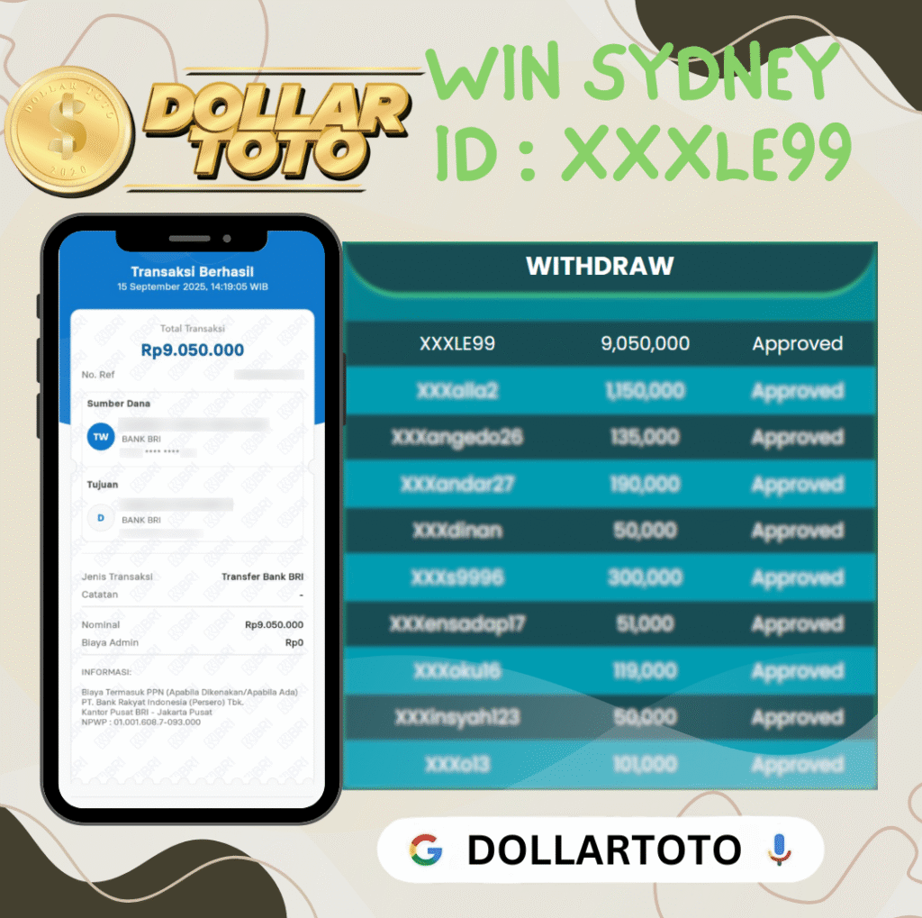UNTUK MEMBER DOLLARTOTO DENGAN USER ID: XXXLE99,