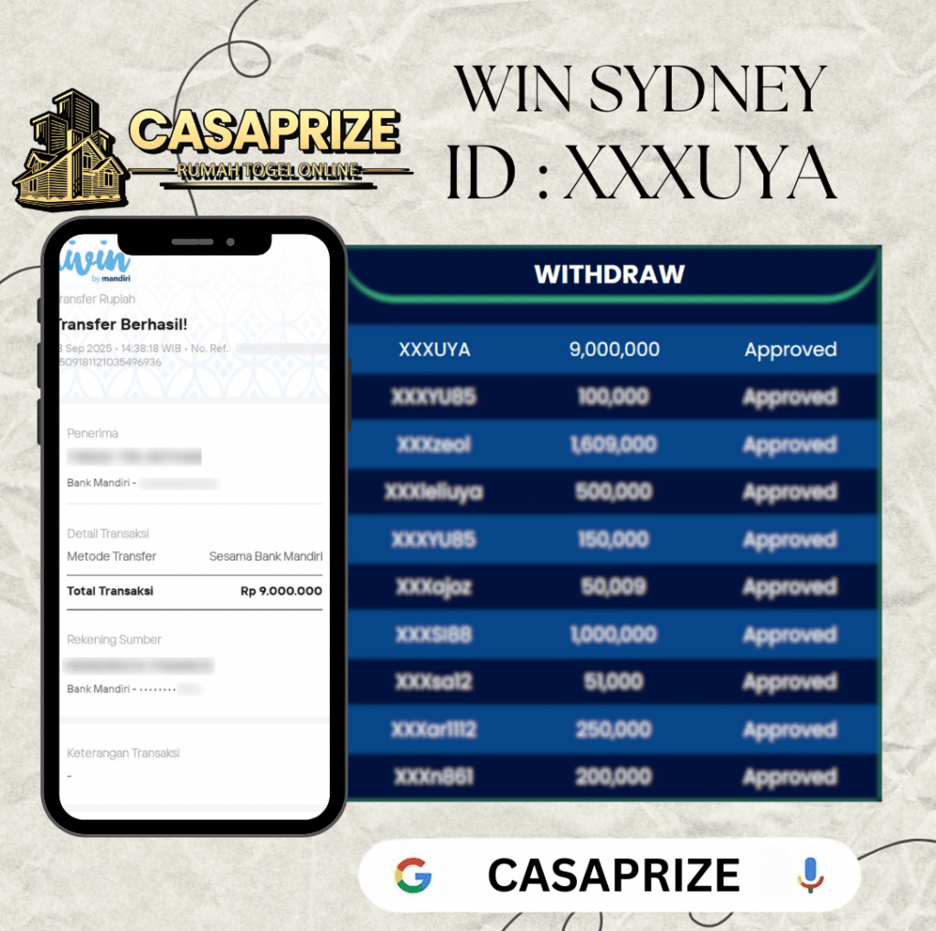UNTUK MEMBER CASAPRIZE DENGAN USER ID: XXXUYA,