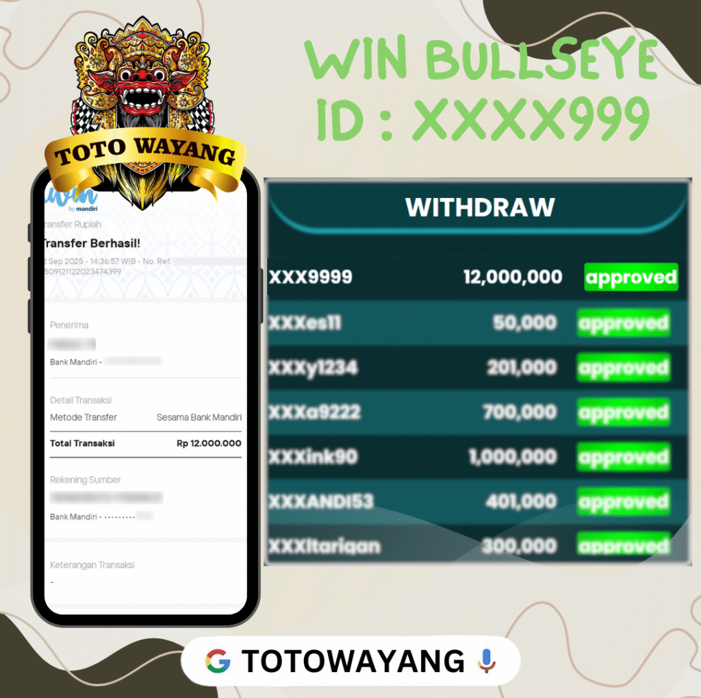 UNTUK MEMBER TOTOWAYANG DENGAN USER ID: XXXX999,