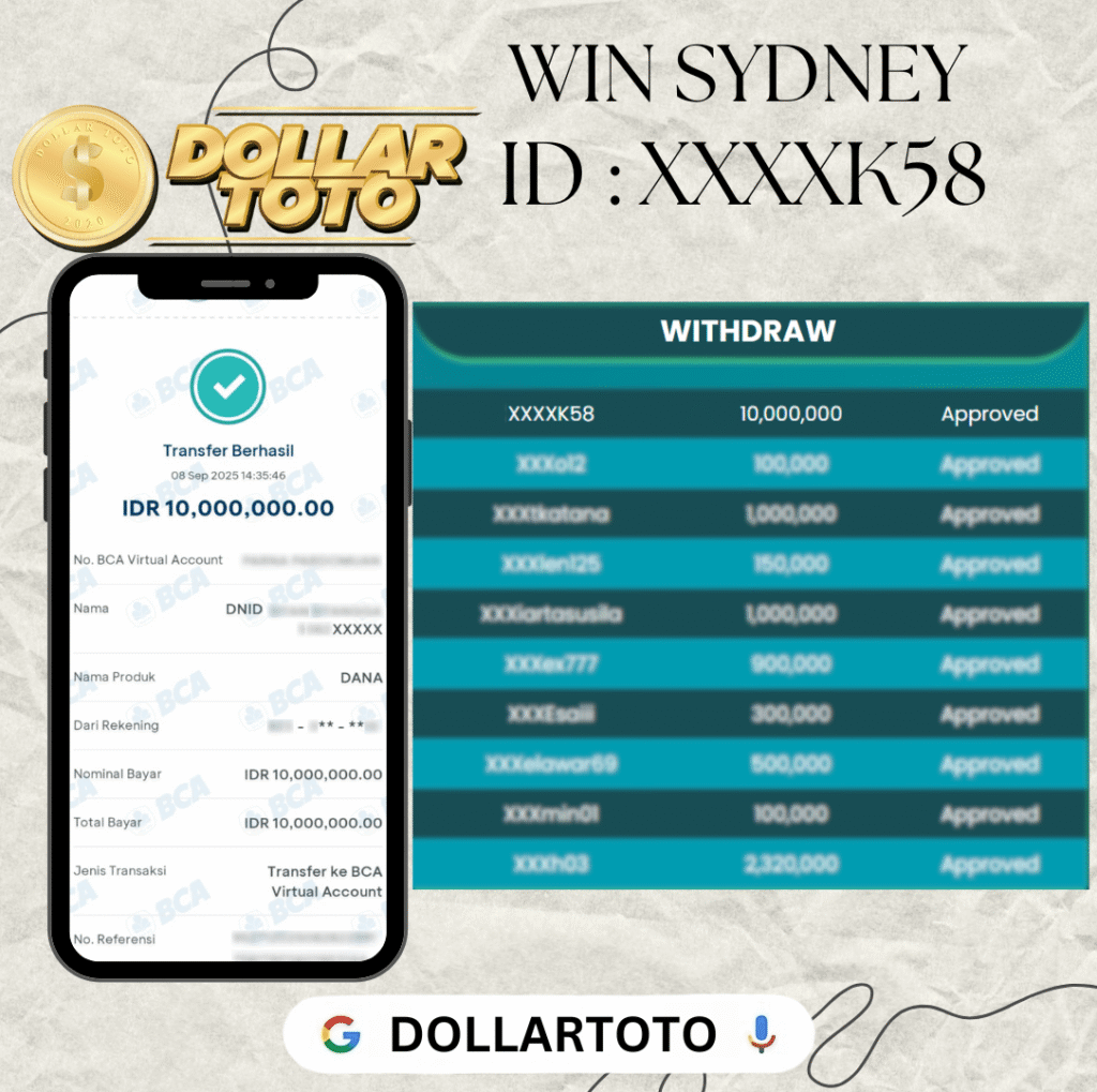 UNTUK MEMBER DOLLARTOTO DENGAN USER ID: XXXXK58,