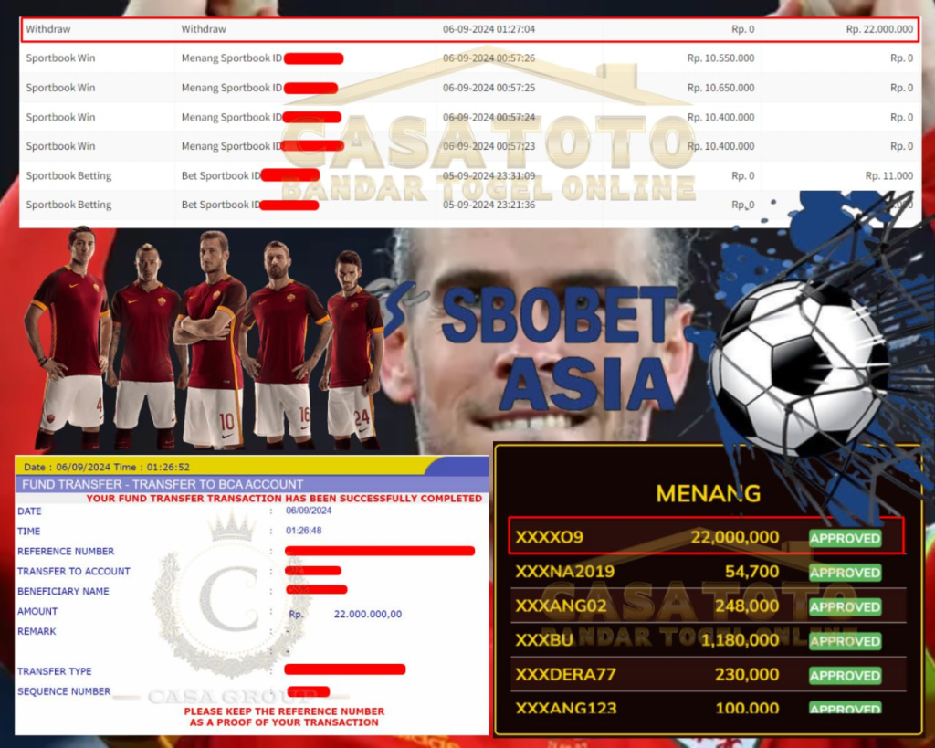 Selamat untuk User ID XXXXo9 yang berhasil menang di permainan berjenis Sportbook ID dengan total kemanangan sebesar 22 juta di bayar lunas.