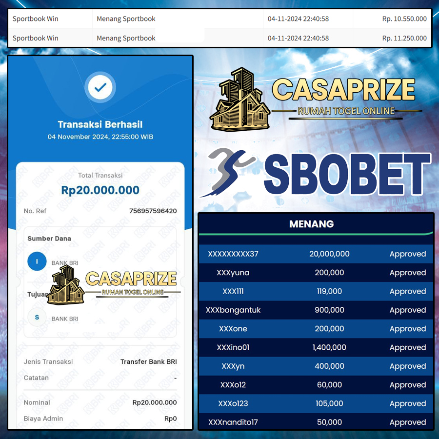 Untuk dana kemenangan sebesar Rp. 20.000.000 dana kemenangan sudah berhasil diproseskan tanpa adanya hambatan sedikitpun.