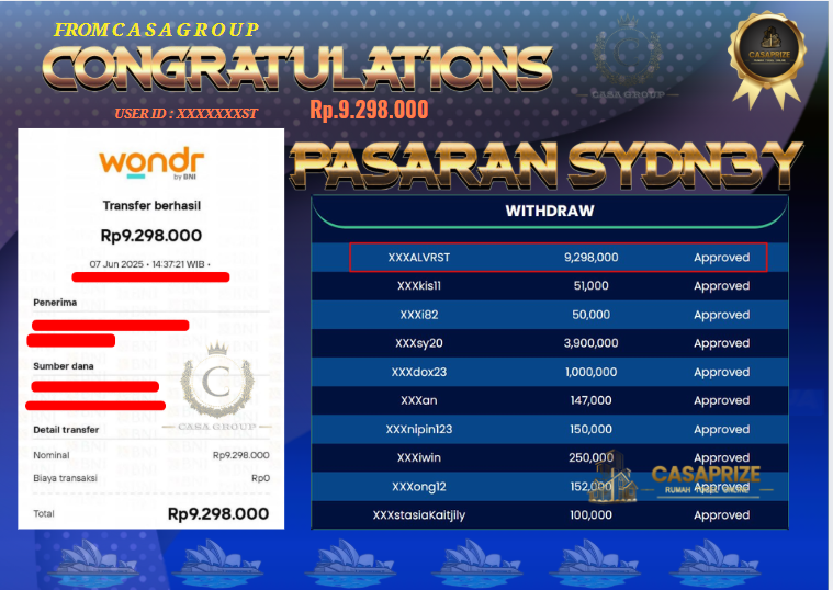 Luar biasa! user id xxxxxxxxST adalah pemenang bet pasaran SYDNEY yang beruntung!