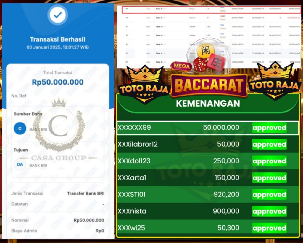 Selamat kepada bosku yang bermain di TOTORAJA dengan user id 𝒳𝒳𝒳𝒳𝒳𝒳𝟫𝟫 yang telah mendapatkan kemenangan besar di game BACARAT > PRAGMATIC LIVE CASINO