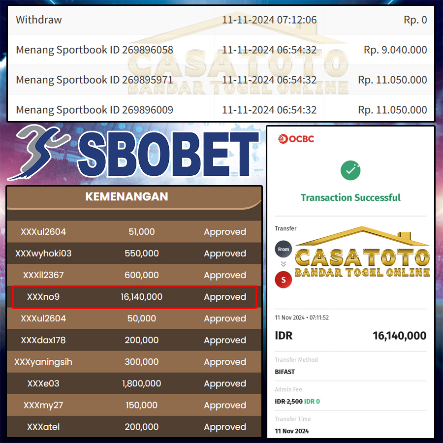 Untuk dana kemenangan sebesar Rp.16.140.000 dana kemenangan sudah berhasil diproseskan tanpa adanya hambatan sedikit pun.