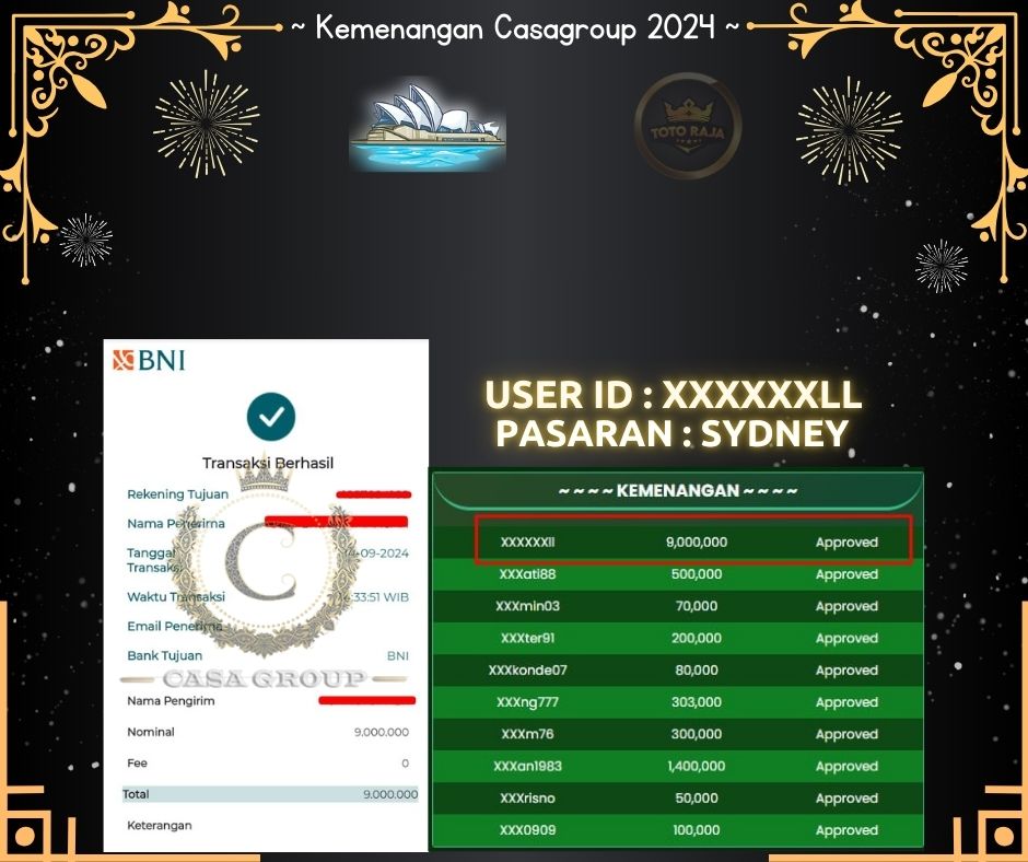 kami ucapkan selamat kepada User ID : XXXXXXXLL di situs totoraja yang berhasil menang SYDNEY dengan total hadiah 9 juta di bayar lunas.