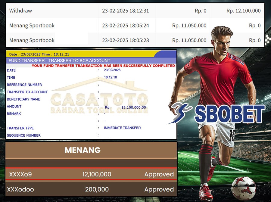 Selamat Kepada Member CASAGROUP dengan User ID XXXXXO9 Yang Telah Mendapatkan Kembali Kemenangannya Di CASATOTO di Permainan SBOBET.