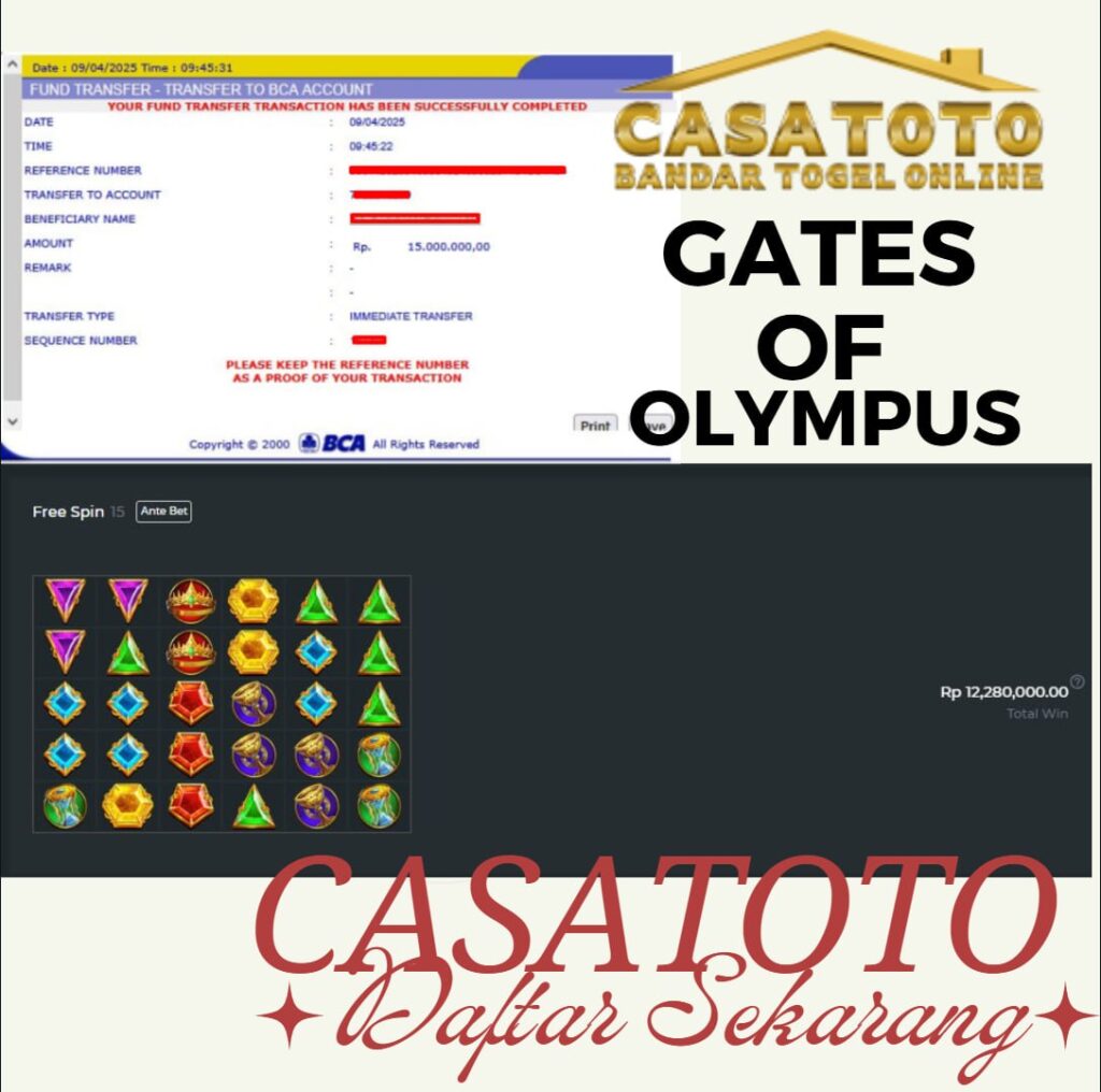 Selamat Kepada Member CASATOTO dengan Username XXXXXXXt9 Yang Beruntung Mendapatkan Kemenangan Besar di Dalam Permainan GATES OF OLYMPUS >> PRAGMATIC PLAY SLOT.