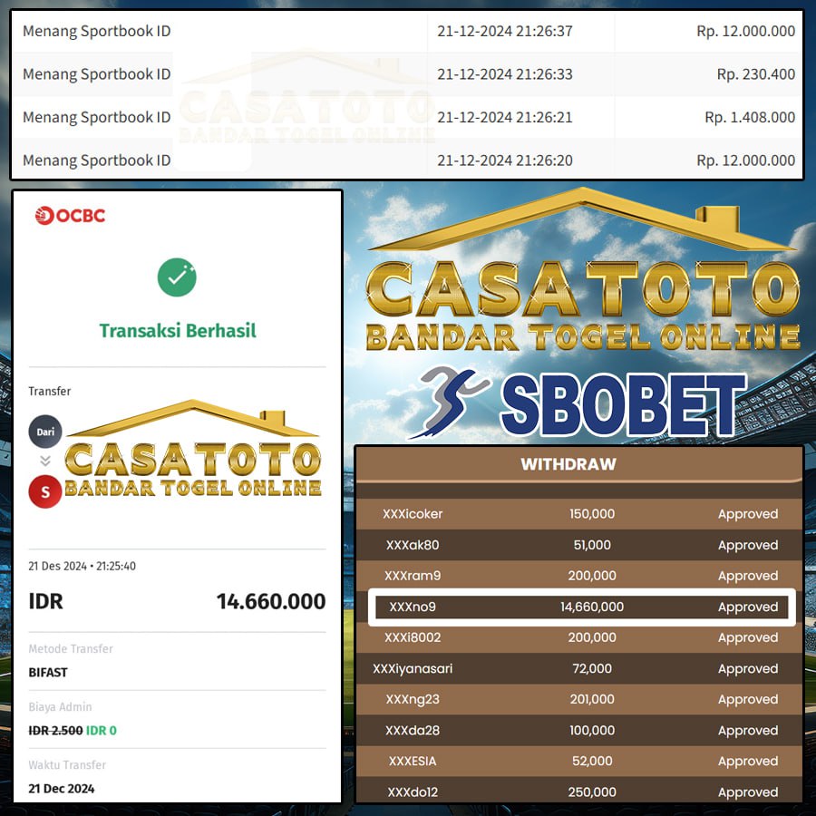 Kami ucapkan selamat kepada User ID XXXn09 yang sudah berhasil menang di permainan Sportbook ID dengan total kemenangan mencapai Rp. 15.560.000