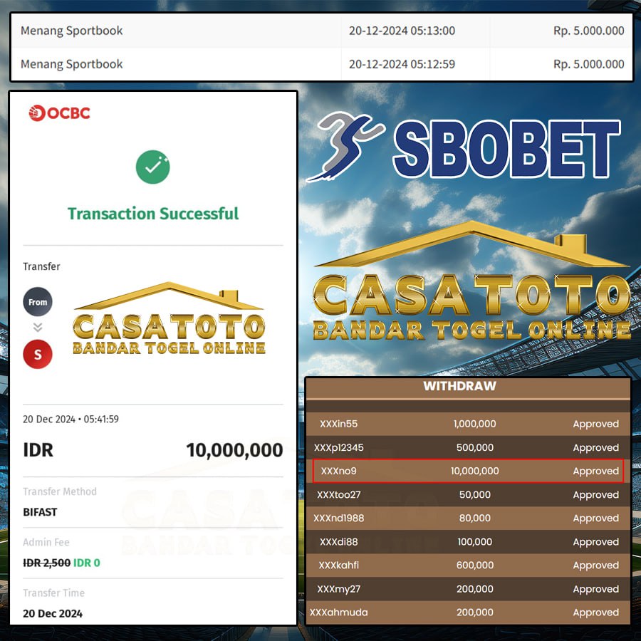 PANEN JP SBOBET CASATOTO 10JT LANGSUNG DIBAYAR LUNAS
