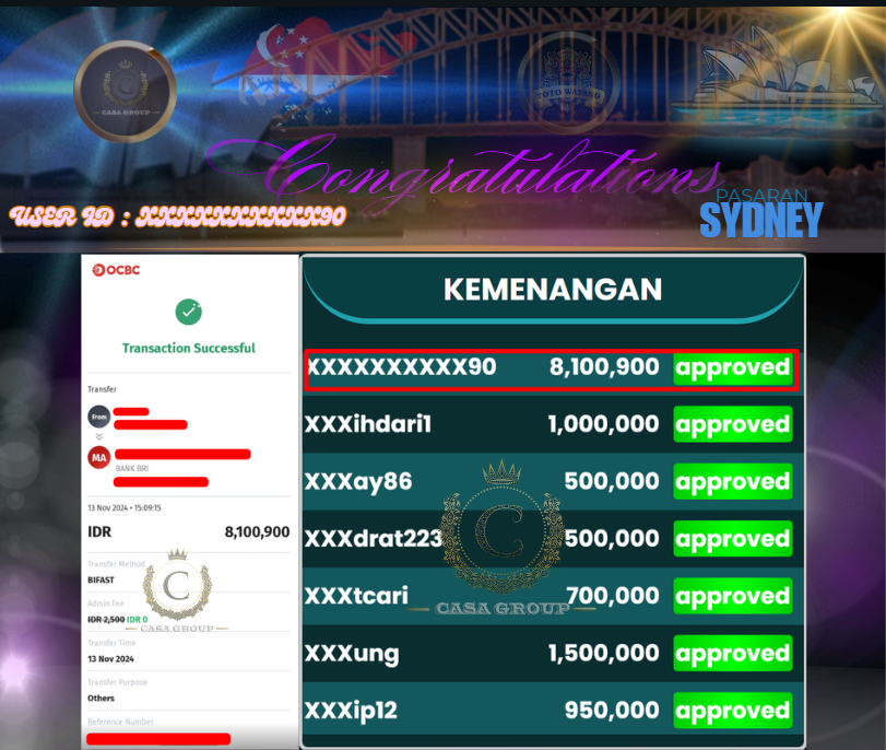 Selamat kepada User ID XXXXXXXXXX90 yang berhasil menang di pasaran SYDNEY