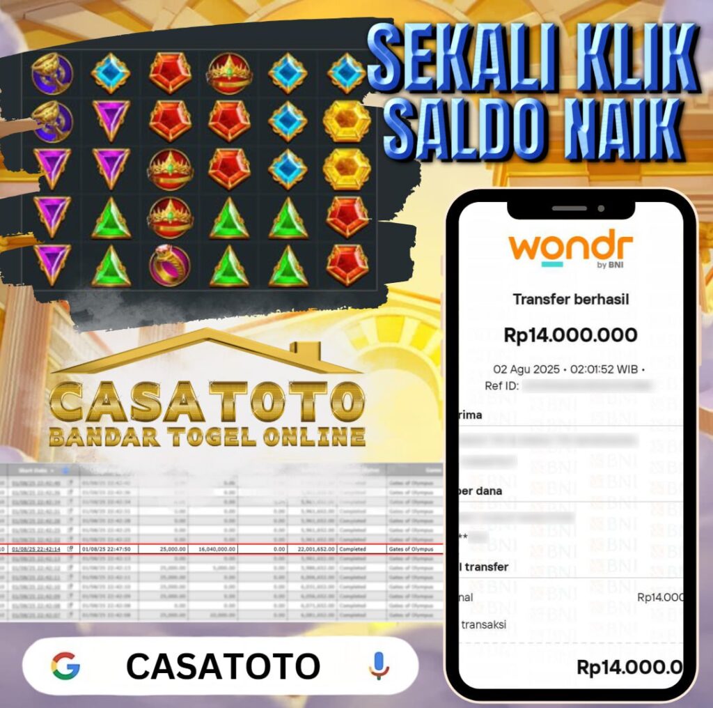 Wd tuntas di bayar LUNAS, tanpa harus tunggu lama, hitungan detik langsung masuk bosku. Segera Daftar dan Rasakan Sensasi Kemenangan di Situs CASATOTO.