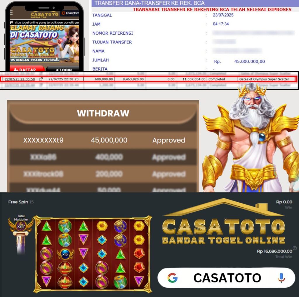 Wd tuntas di bayar LUNAS, tanpa harus tunggu lama, hitungan detik langsung masuk bosku. Segera Daftar dan Rasakan Sensasi Kemenangan di Situs CASATOTO.