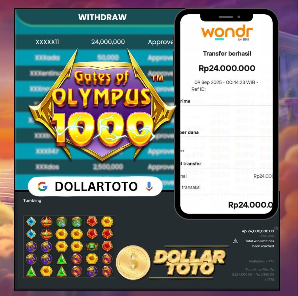 🎉 SELAMAT KEPADA MEMBER SETIA DOLLARTOTO dengan Username: Nxaxax11 yang sukses membawa pulang CUAN BESAR dari game GATES OF OLYMPUS 1000 – PRAGMATIC PLAY SLOT!