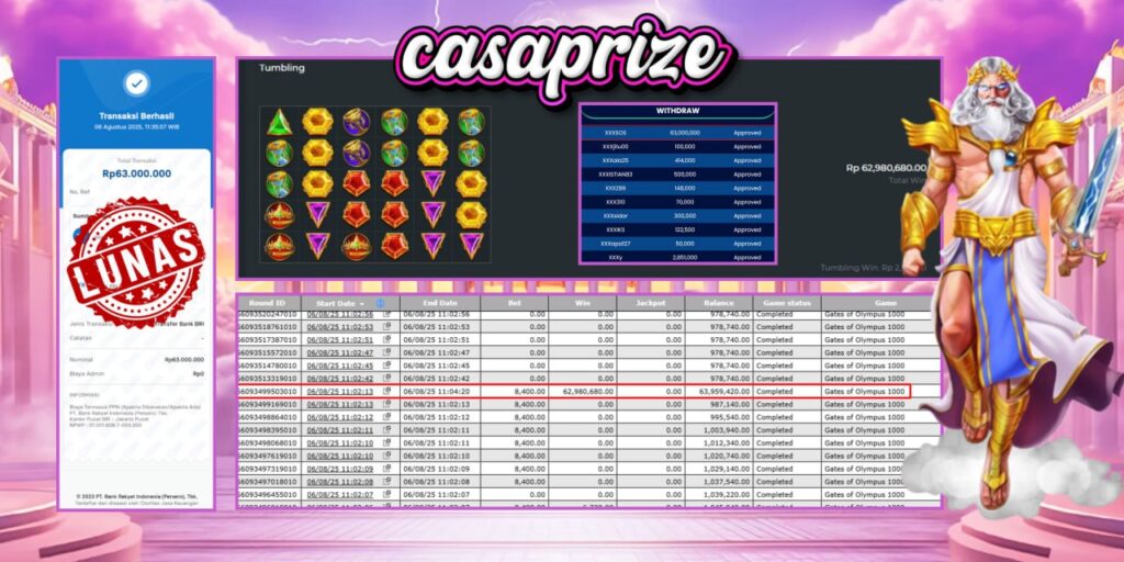 Selamat Kepada Member CASAPRIZE dengan User ID XXXSOS Atas Kemenangan di Game GATES OF OLYMPUS – PRAGMATIC PLAY.