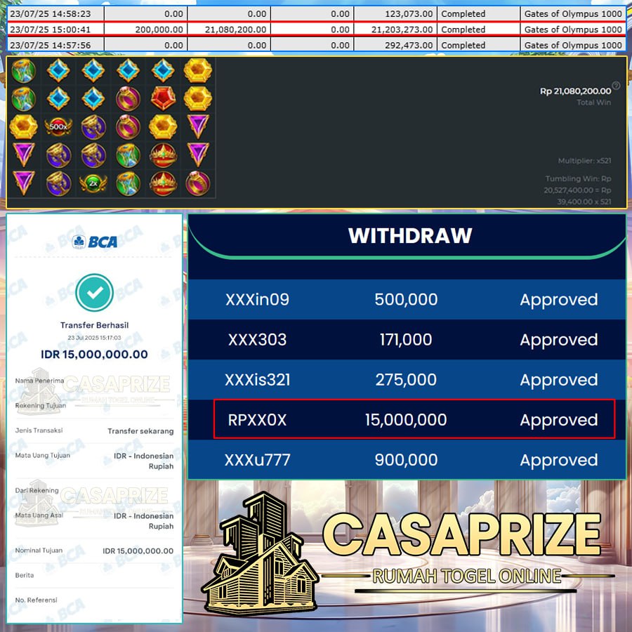 Selamat Kepada Member CASAPRIZE dengan User ID RPXX0X Atas Kemenangan di Game GATES OF OLYMPUS – PRAGMATIC PLAY.