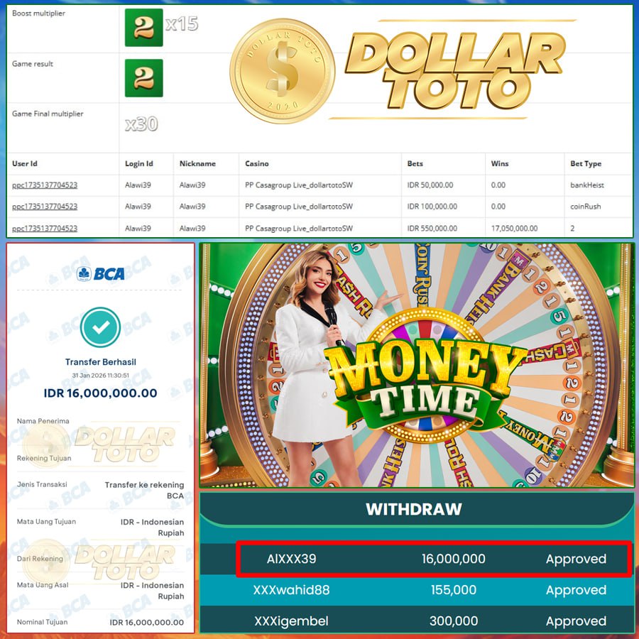 SELAMAT UNTUK MEMBER  DOLLARTOTO DENGAN USERNAME  AIXXX39 BERHASIL MERAIH KEMENANGAN DI MONEY TIME – PRAGMATIC LIVE.