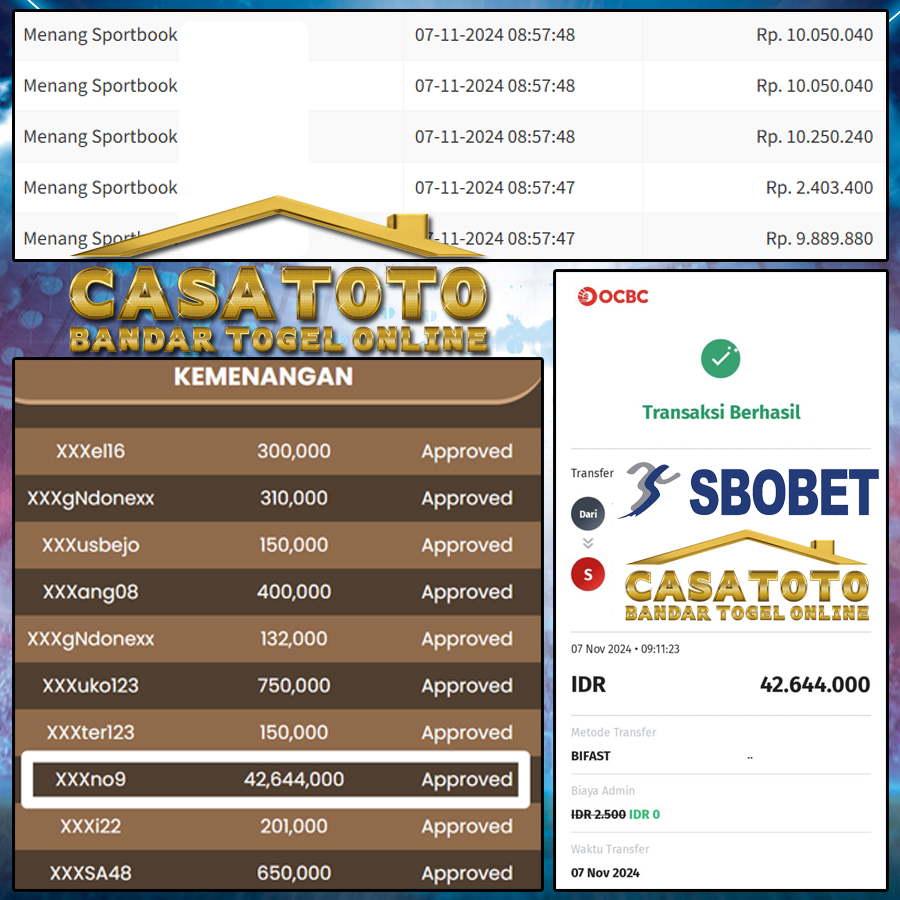 Bagi bosku yang ingin merasakan kemenangan yang sama bisa langsung segera mendaftarkan akunnya di >>CASAGROUP