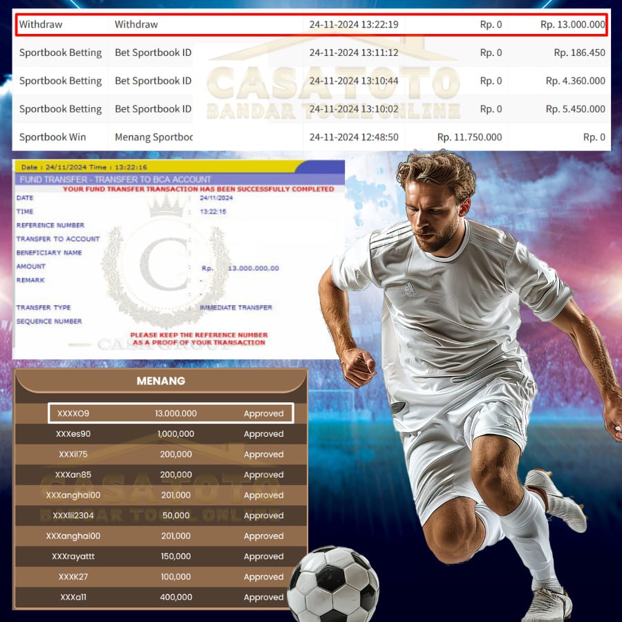 Untuk dana kemenangan sebesar Rp. 13.000.000 dana kemenangan sudah berhasil diproseskan tanpa adanya hambatan sedikit pun.