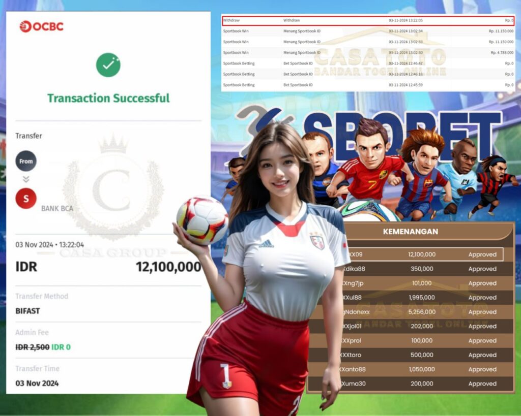 Selamat kepada member CASATOTO user id XXXXO9 yang telah mendapat kemenangan di SBOBET.