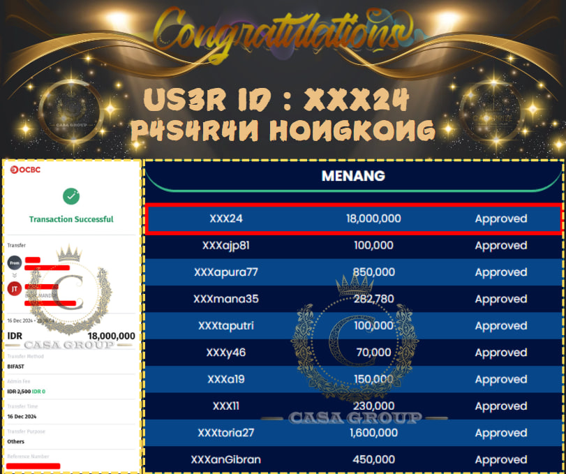 SELAMAT KEPADA MEMBER CASAPRIZE MENANG BESAR DIPASARAN HONGKONG