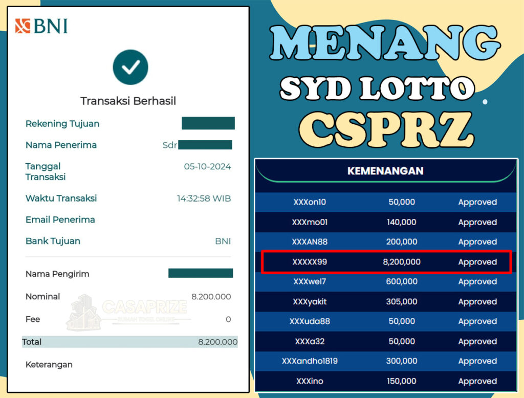 SELAMAT KEPADA MEMBER CASAPRIZE MENANG DI PASARAN SYDNEY LOTTO CASAGROUP October 5, 2024 BUKTI JP TOGEL, CASAPRIZE, DAFTAR BO TERPERCAYA Comments Total kemenangan di SYDNEY LOTTO mencapai Rp.8.200.000 Juta yang di menangkan oleh USER ID : XXXXX99 disitus CASAPRIZEUntuk kemenangan sudah mendarat ke tujuan tanpa ada potongan. LANGSUNG DAFTAR >> CASAGROUP