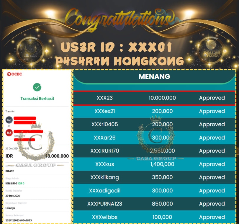 SELAMAT ATAS JACKPOT PAUS UNTUK MEMBER DOLLARTOTO DENGAN USER ID : XXX23 YANG TELAH BERHASIL MENANG PADA PASARAN HONGKONG SEBESAR Rp. 10.000.000- UNTUK DANA KEMENANGAN SUDAH LANGSUNG DIBAYAR LUNAS, UNTUK MEMBER YANG BELUM BERHASIL MENDAPATKAN KEMENANGAN BESAR JANGAN BERKECIL HATI SEGERA DAFTARKAN AKUN ANDA AGAR BISA MENDAPATKAN JACKPOT .