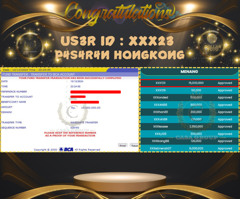 SELAMAT KEPADA MEMBER DOLLARTOTO MENANG BESAR DIPASARAN HONGKONG