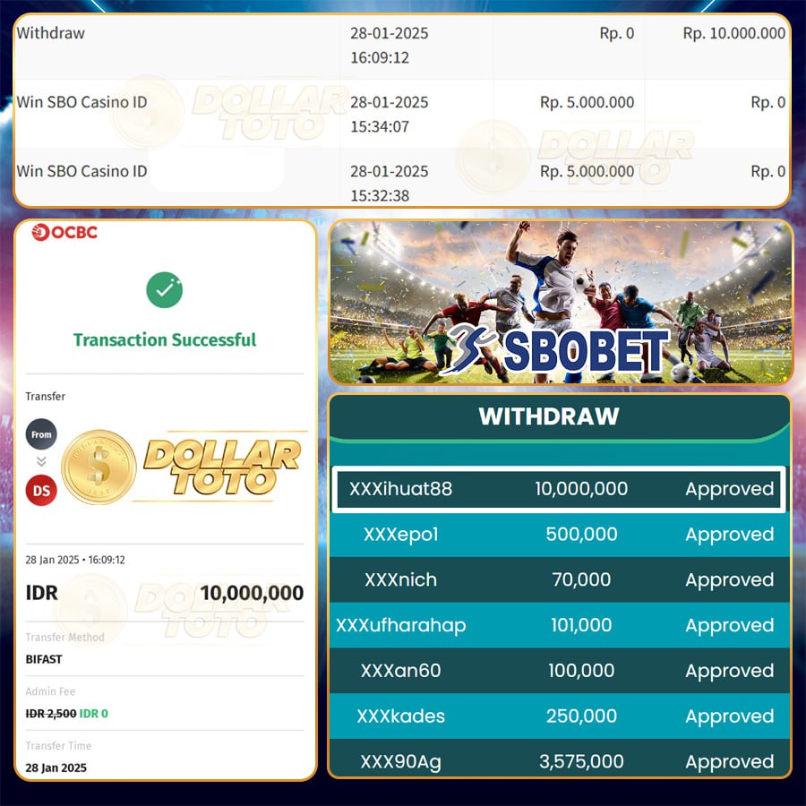 TOTAL KEMENANGAN SEBESAR RP. 10.000.000 DIBAYAR LUNAS TANPA POTONGAN APAPUN.