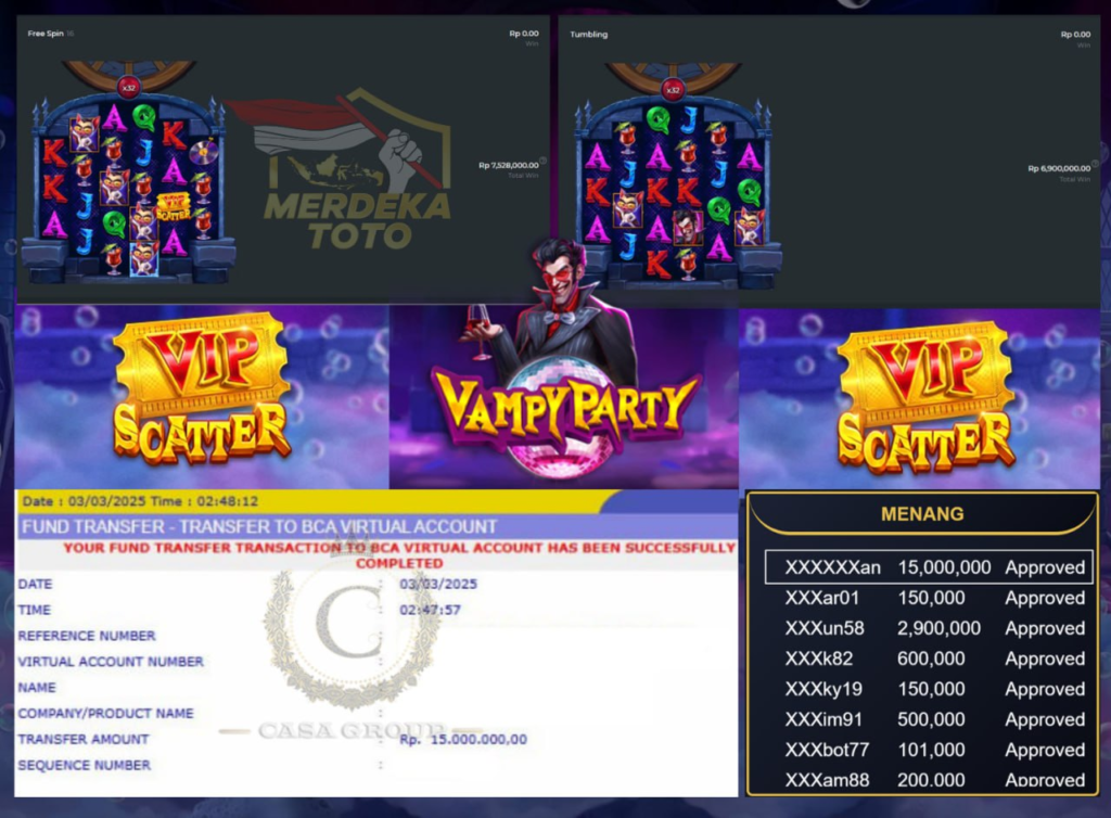 SELAMAT KEPADA MEMBER MERDEKATOTO MENANG 15 JUTA DI GAME VAMP PARTY