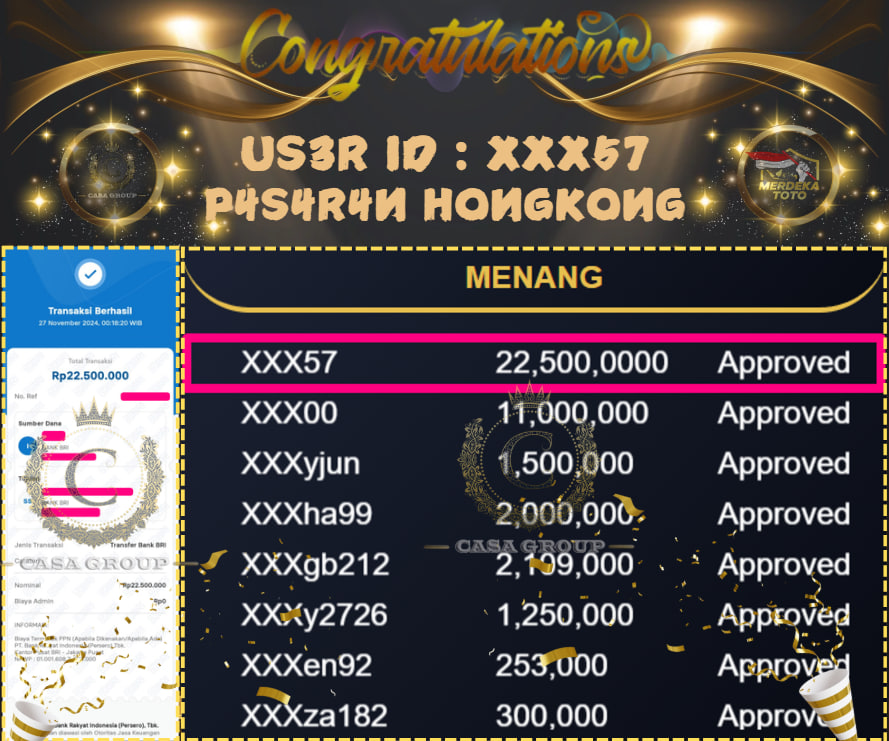 SELAMAT ATAS JACKPOT PAUS UNTUK MEMBER MERDEKATOTO DENGAN USER ID : XXX57 YANG TELAH BERHASIL MENANG PADA PASARAN HONGKONG SEBESAR Rp. 22.500.000- UNTUK DANA KEMENANGAN SUDAH LANGSUNG DIBAYAR LUNAS, UNTUK MEMBER YANG BELUM BERHASIL MENDAPATKAN KEMENANGAN BESAR JANGAN BERKECIL HATI SEGERA DAFTARKAN AKUN ANDA AGAR BISA MENDAPATKAN JACKPOT .