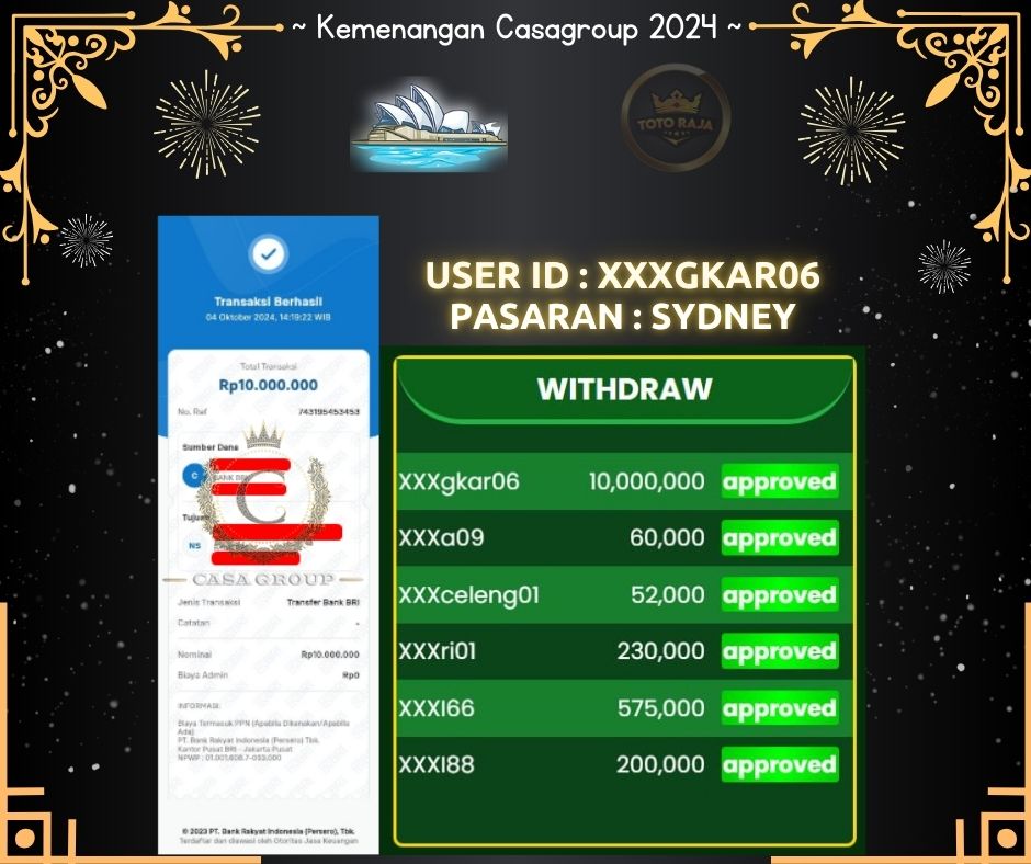 SELAMAT KEPADA MEMBER TOTORAJAMENANG DI PASARAN SYDNEY CASAGROUP October 4, 2024 BUKTI JP TOGEL, DAFTAR BO TERPERCAYA, TOTORAJA Comments Total kemenangan di SYDNEY mencapai 10,000,000 Juta yang di menangkan oleh USER ID : XXXGKAR06 disitus TOTORAJAUntuk kemenangan sudah mendarat ke tujuan tanpa ada potongan.LANGSUNG DAFTAR >> CASAGROUP