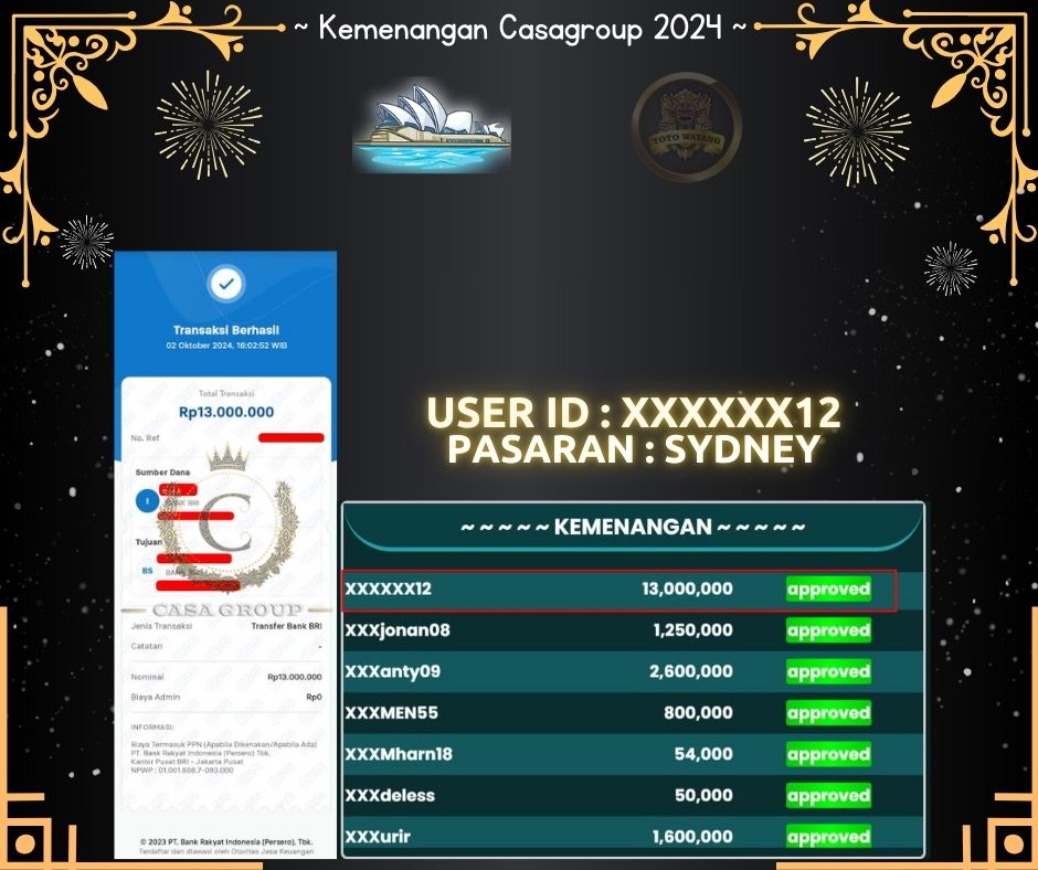 Total kemenangan di SYDNEY mencapai 13, Juta yang di menangkan oleh USER ID : XXXXXX12 disitus TOTOWAYANG