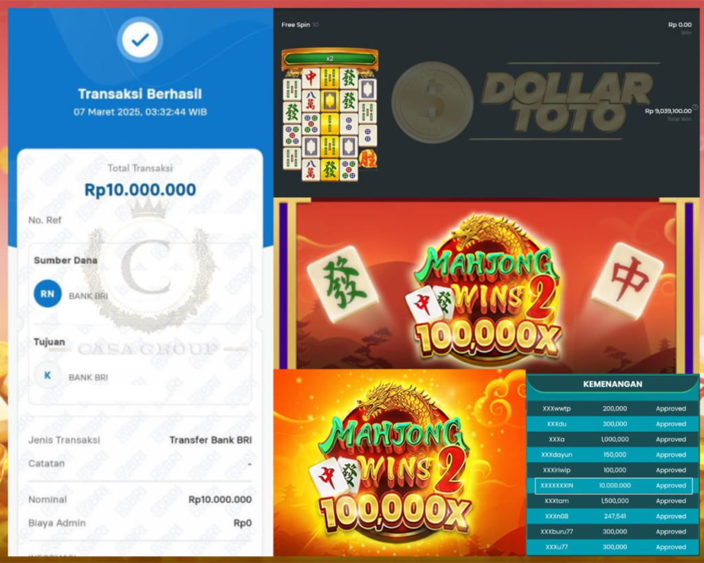 Selamat kepada member yang telah mendaftar di DOLLARTOTO dengan user id XXXXXXXIN yang telah mendapatkan kemenangan besar dalam game MAHJONG WINS 2 – PRAGMATIC PLAY.