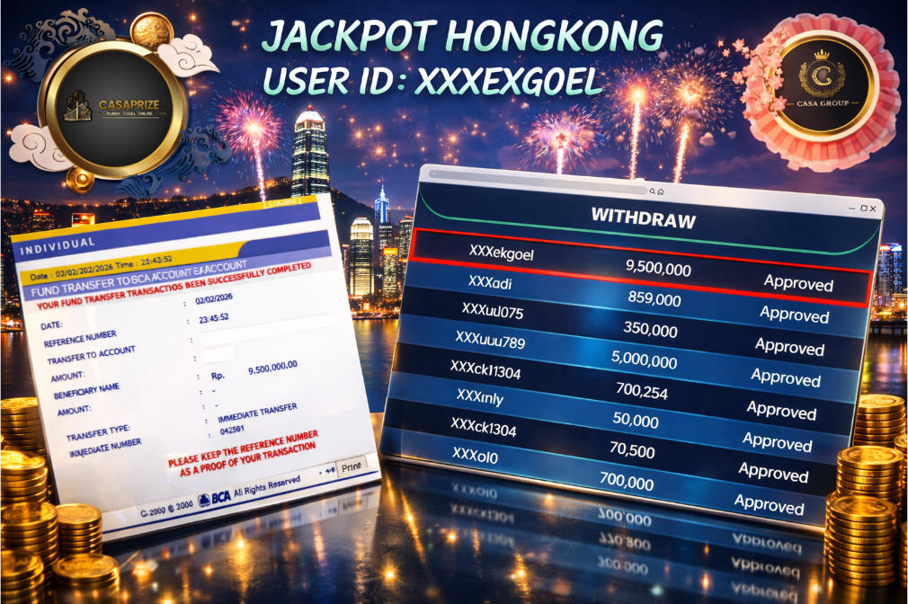 Selamat atas jackpot paus untuk member CASAPRIZE dengan user id : xxxexgoel yang telah berhasil menang pada pasaran HONGKONG sebesar Rp. 9.500.000 ,-