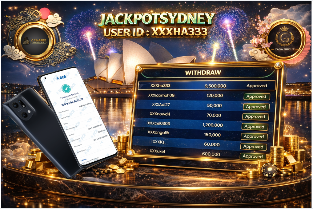 Selamat atas jackpot paus untuk member CASAPRIZE dengan user id : xxxha33 yang telah berhasil menang pada pasaran SYDNEY sebesar Rp. 9.500.000 ,-