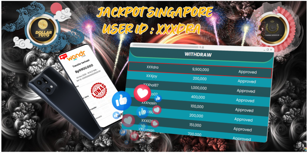 Selamat untuk member DOLLARTOTO yang sudah Jackpot dipasaran SINGAPORE