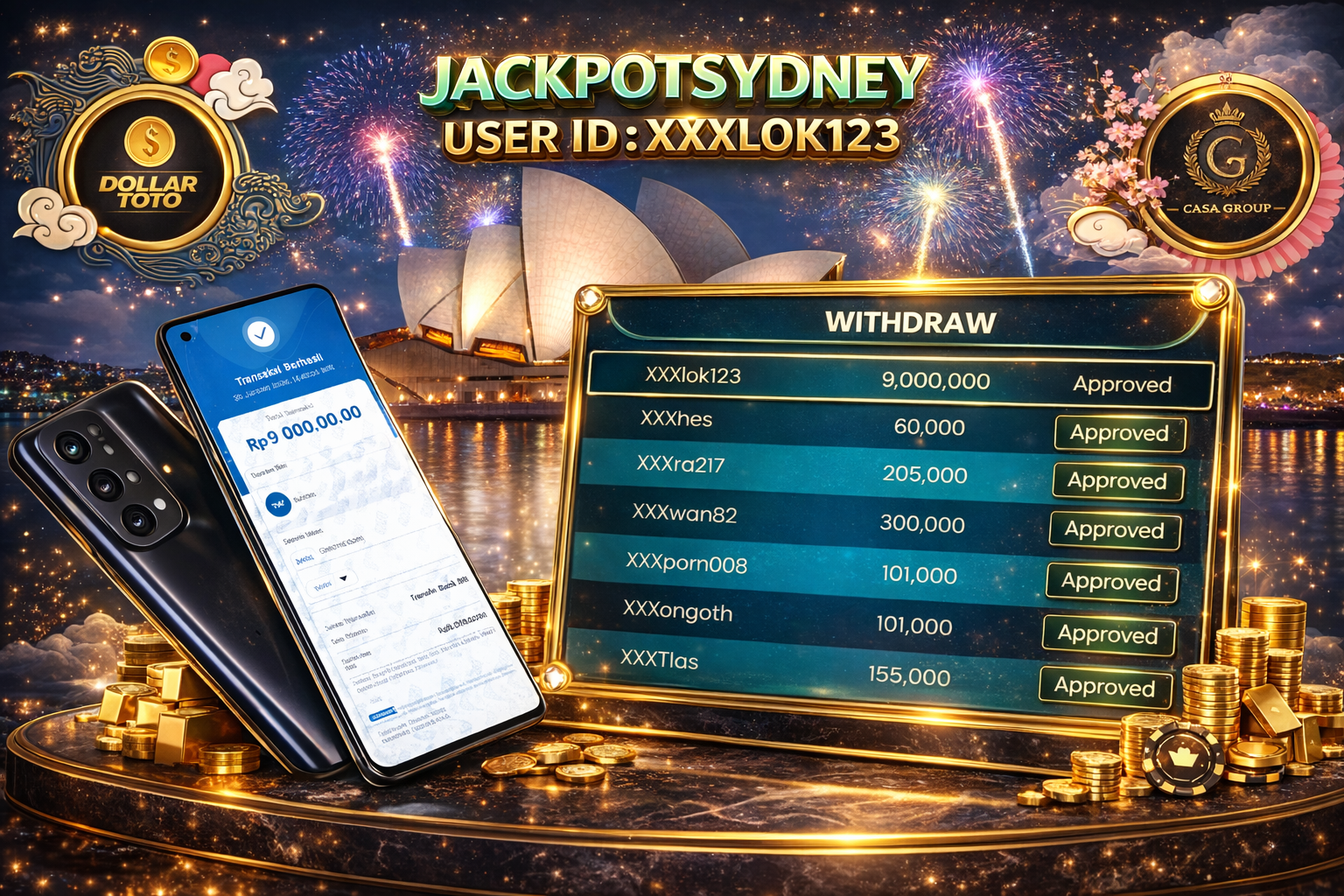 Selamat atas jackpot paus untuk member DOLLARTOTO dengan user id : xxxlok123 yang telah berhasil menang pada pasaran SYDNEY sebesar Rp. 9.000.000 ,-