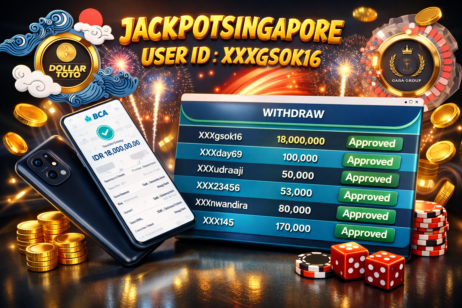 Selamat atas jackpot paus untuk member DOLLARTOTO dengan user id : xxxgsok16 yang telah berhasil menang pada pasaran TOTO MACAU 3 sebesar Rp. 18.000.000 ,-