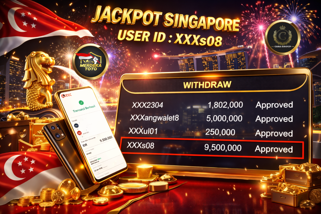 Selamat atas jackpot paus untuk member MERDEKATOTO dengan user id : xxxs08 yang telah berhasil menang pada pasaran SINGAPORE sebesar Rp. 9.500.000 ,-