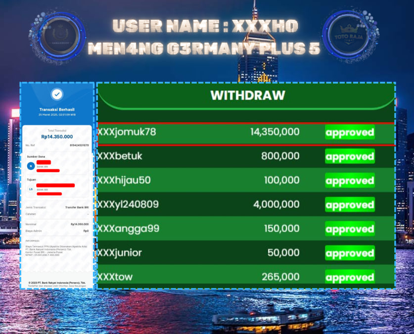 Untuk dana kemenangan sudah langsung dibayar lunas tanpa ribet dan tanpa potongan apapun , bagi member yang belum berhasil mendapatkan jackpott paus jangan berkecil hati ,, langsung saja daftarkan akun anda agar bisa mendapatkan jackpot seperti member – member lainnya.